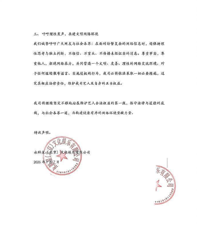 1日,蔡依林方发布严正声明,针对近期网络上关于蔡依林演唱会内容的断章取义以及不实解读进行维权。 声明称,对于网络用户“斯利亚(账户:celialiang)”及其他相关账号在此次事件中散布不实信息、进行人身攻击的恶劣行为,已进行证据固定,并通知平台立即删除全部侵权内容。目前该司已启动法律程序,坚决追究其法律责任,绝不姑息。此外,声明呼吁广大网友与社会各界,请保持理性思考与独立判断,不轻信、不盲从、不传播未经证实的消息。